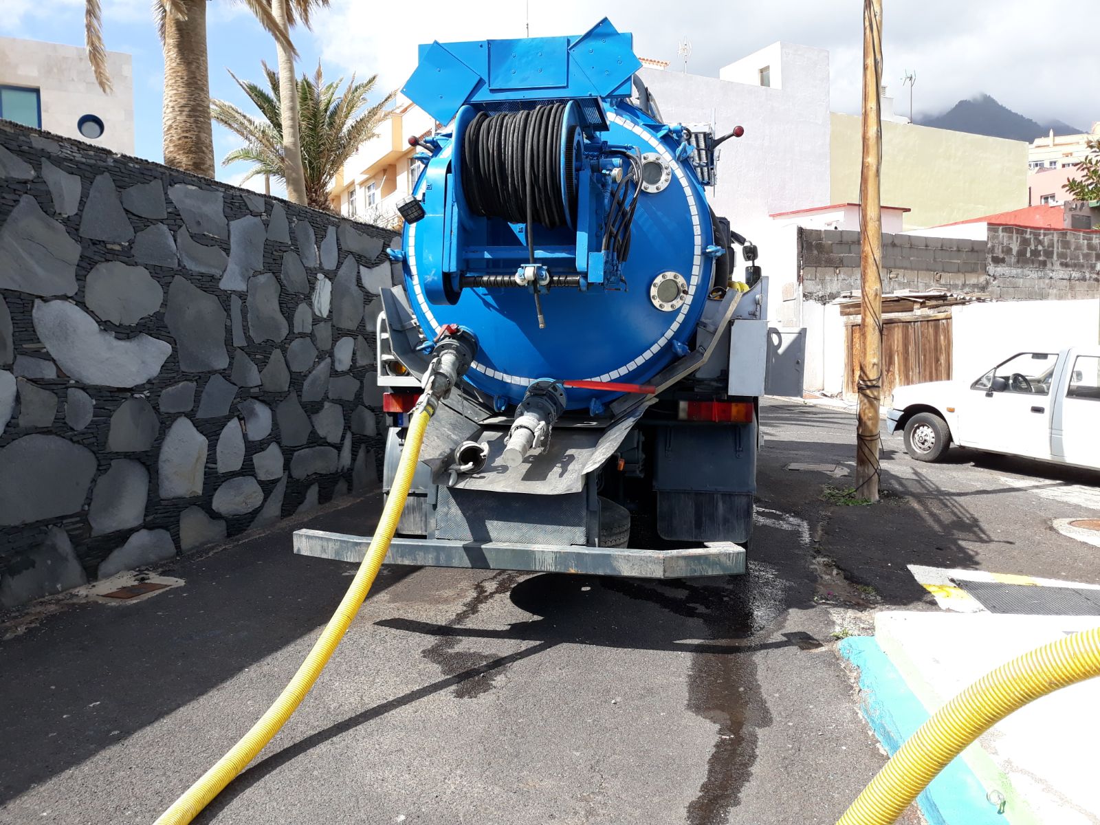 La longitud aproximada de las redes de saneamiento es de 30km y permiten el transporte de aguas recibidas a las estaciones de bombeo de agua residual instaladas en el municipio. Las labores de limpieza se desarrollan siguiendo distinta metodología según se trate de redes de saneamiento Para efectuar la limpieza de la infraestructura de saneamiento se emplean como medio principal los camiones mixtos impulsores-succionadores, provistos de una tripulación de dos personas. Estos camiones están dotados de una tobera que se introduce en los colectores y succiona los residuos o impulsa agua a gran presión según se requiera por el tipo de obstrucción que se detecte.